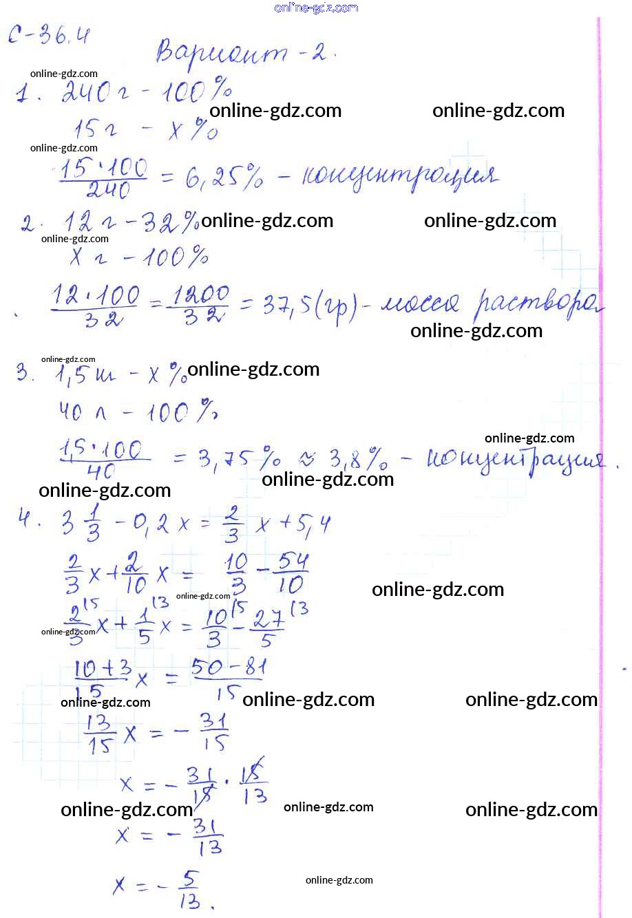 Готовые домашние задания по Математике за 6 класс Самостоятельные работы Зубарева, Лепешонкова УМК 2020 - 4. Варианты СР-36 2