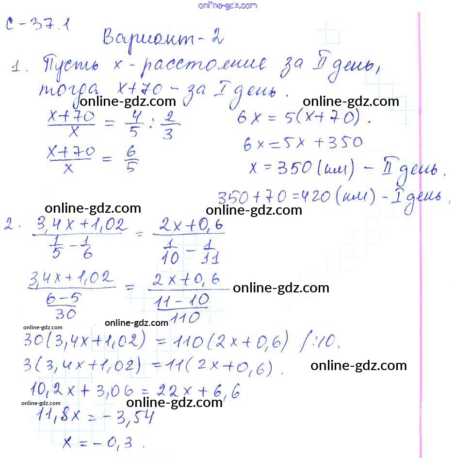 Готовые домашние задания по Математике за 6 класс Самостоятельные работы Зубарева, Лепешонкова УМК 2020 - 1. Варианты СР-37 2