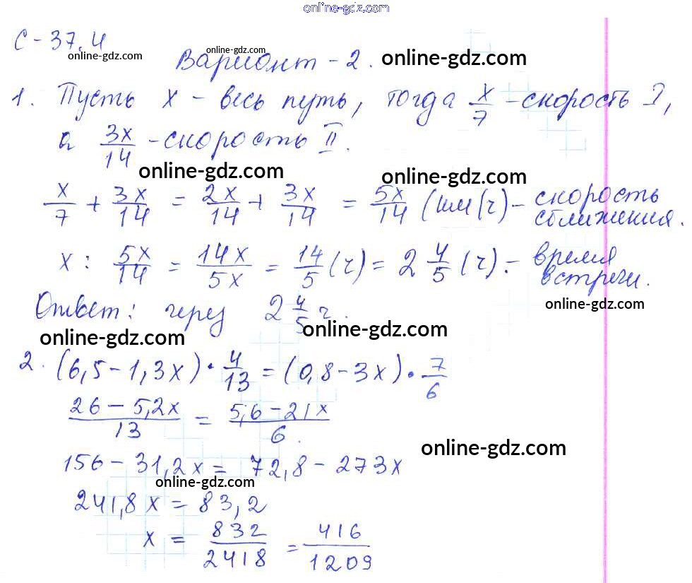 Готовые домашние задания по Математике за 6 класс Самостоятельные работы Зубарева, Лепешонкова УМК 2020 - 4. Варианты СР-37 2