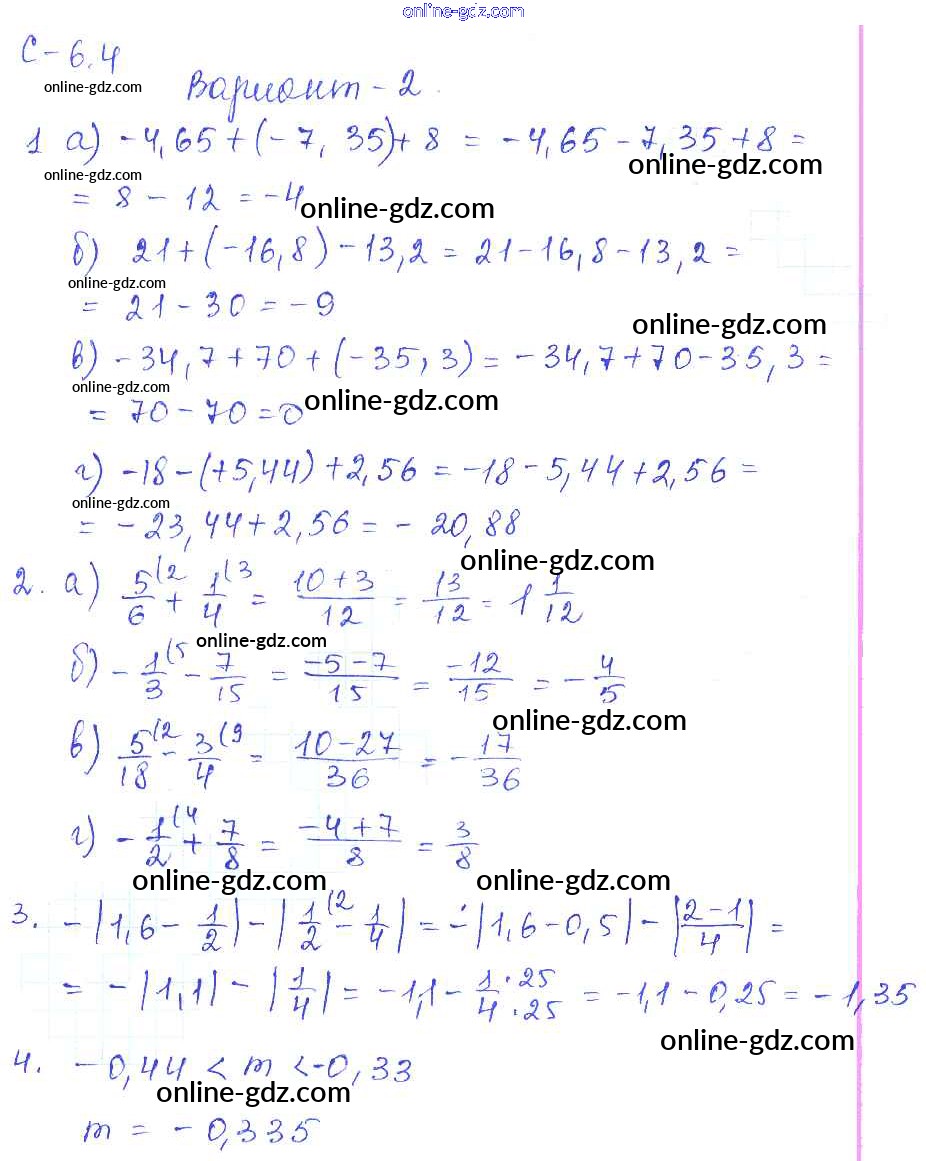 Готовые домашние задания по Математике за 6 класс Самостоятельные работы Зубарева, Лепешонкова УМК 2020 - 4. Варианты СР-6 2