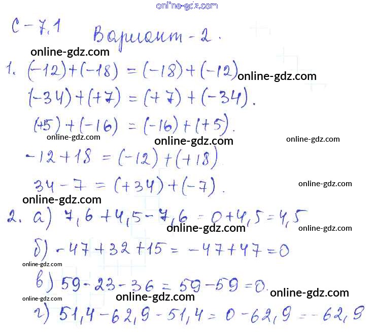 Готовые домашние задания по Математике за 6 класс Самостоятельные работы Зубарева, Лепешонкова УМК 2020 - 1. Варианты СР-7 2