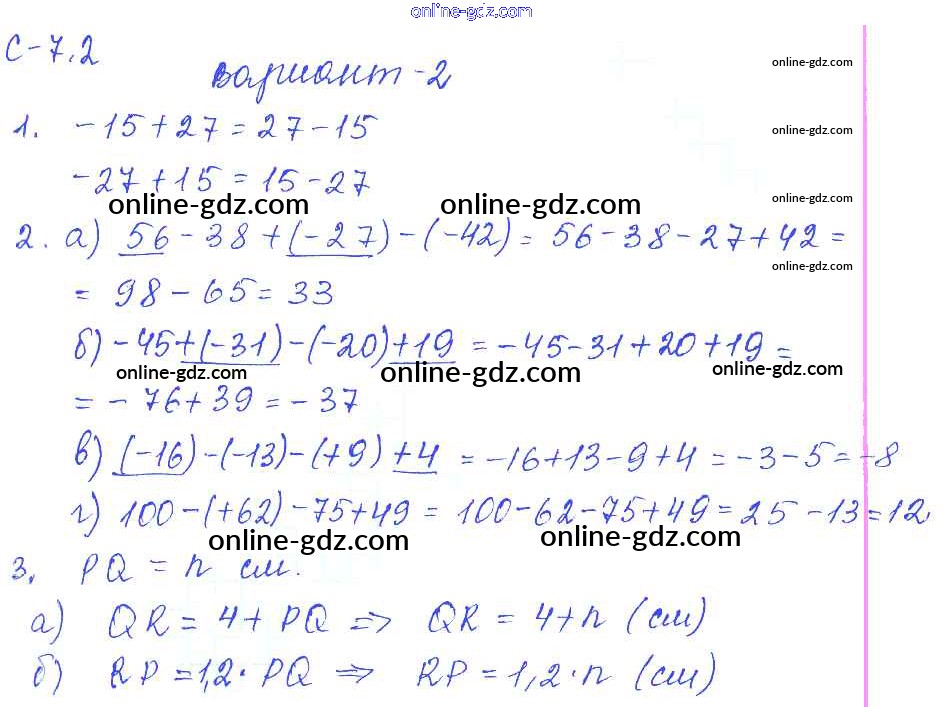 Готовые домашние задания по Математике за 6 класс Самостоятельные работы Зубарева, Лепешонкова УМК 2020 - 2. Варианты СР-7 2