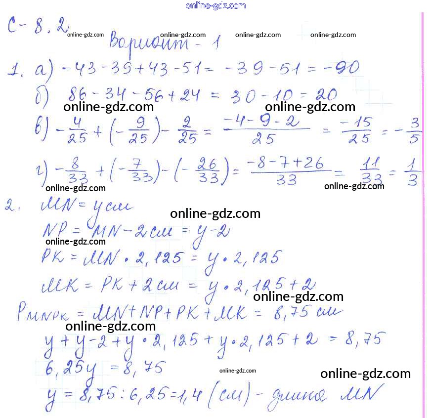 Готовые домашние задания по Математике за 6 класс Самостоятельные работы Зубарева, Лепешонкова УМК 2020 - 2. Варианты СР-8 1