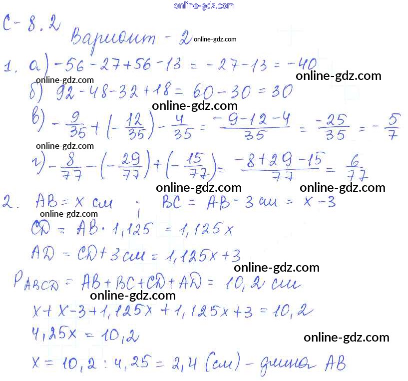 Готовые домашние задания по Математике за 6 класс Самостоятельные работы Зубарева, Лепешонкова УМК 2020 - 2. Варианты СР-8 2
