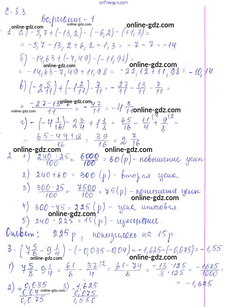 Готовые домашние задания по Математике за 6 класс Самостоятельные работы Зубарева, Лепешонкова УМК 2020 - 3. Варианты СР-8 1