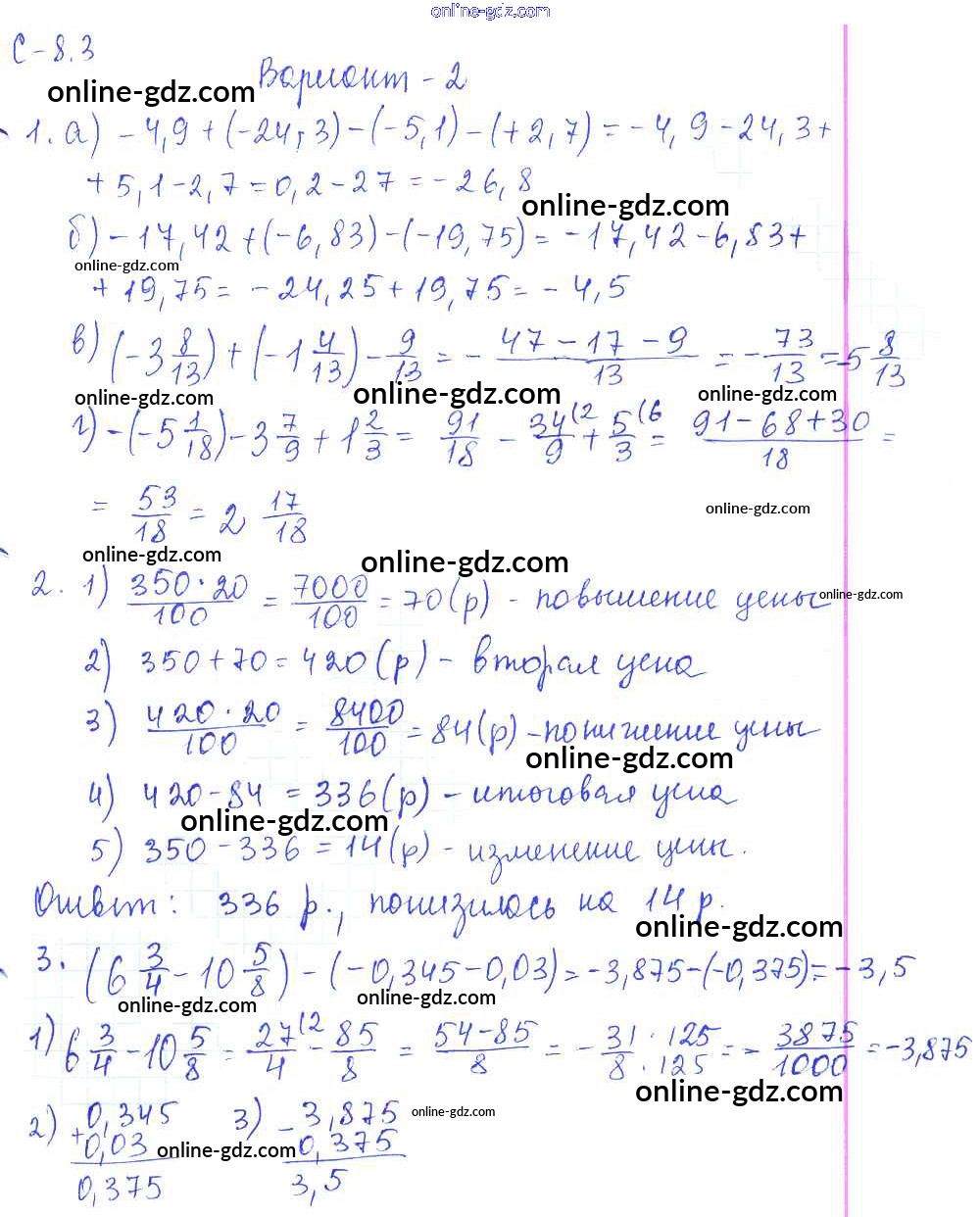 Готовые домашние задания по Математике за 6 класс Самостоятельные работы Зубарева, Лепешонкова УМК 2020 - 3. Варианты СР-8 2