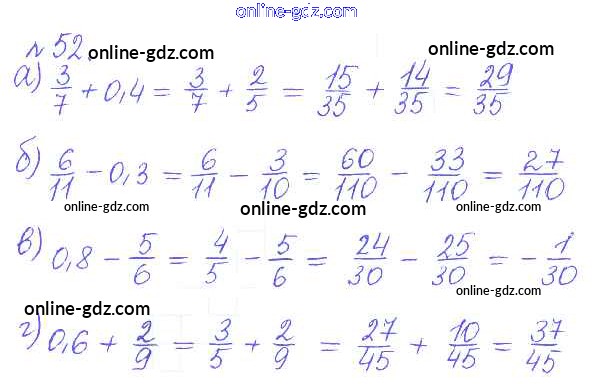 Готовые домашние задания по Математике за 6 класс Сборник задач и упражнений Гамбарин, Зубарева 2011 - Повторение 52
