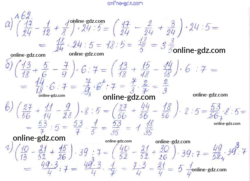 Готовые домашние задания по Математике за 6 класс Сборник задач и упражнений Гамбарин, Зубарева 2011 - Повторение 62