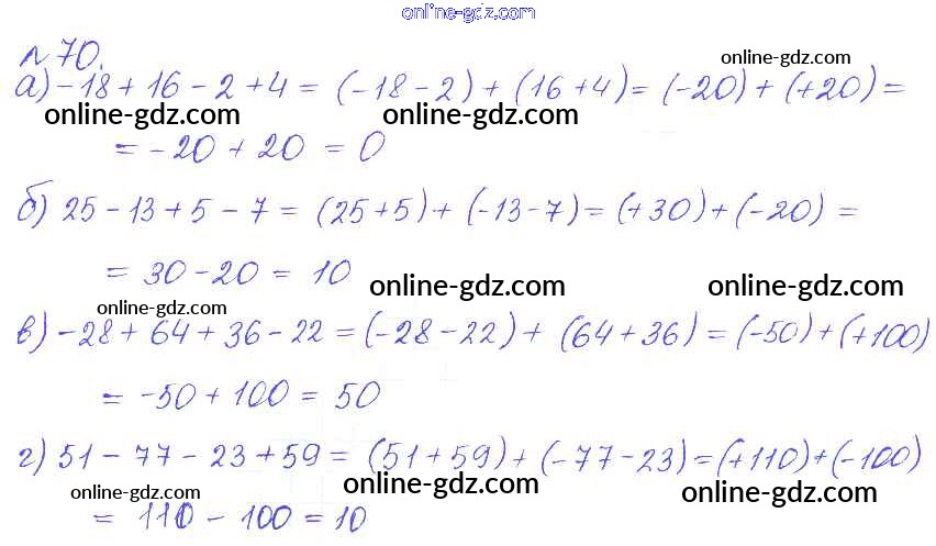 Готовые домашние задания по Математике за 6 класс Сборник задач и упражнений Гамбарин, Зубарева 2011 - Упражнения 70