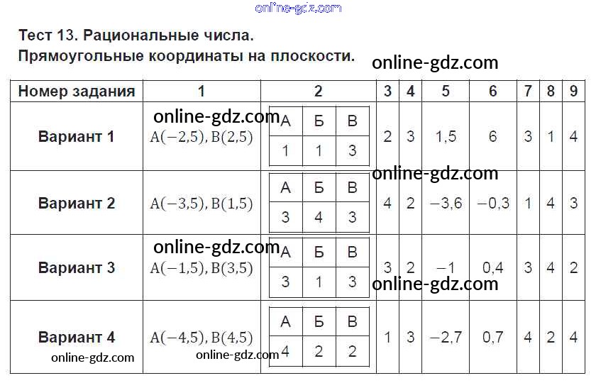 Готовые домашние задания по Математике за 6 класс Тематические тесты Кузнецова, Минаева 2018 - Тесты 13