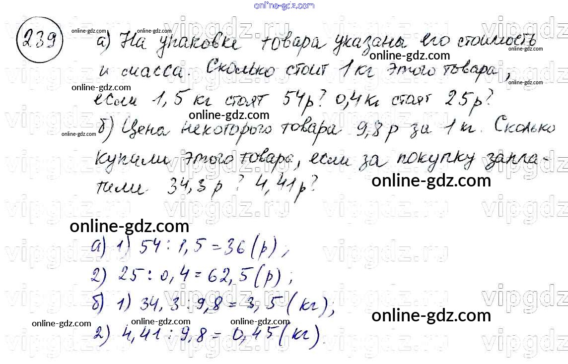 Готовые домашние задания по Математике за 6 класс Учебник Бунимович, Кузнецова Сферы 2014 - Упражнения 239