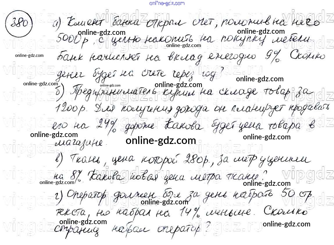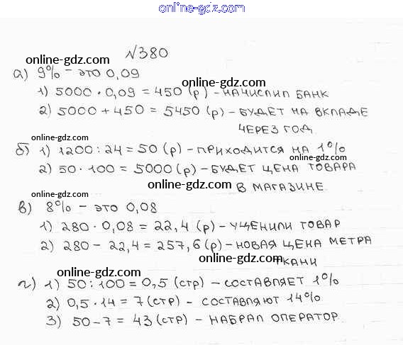Готовые домашние задания по Математике за 6 класс Учебник Бунимович, Кузнецова Сферы 2014 - Упражнения 380