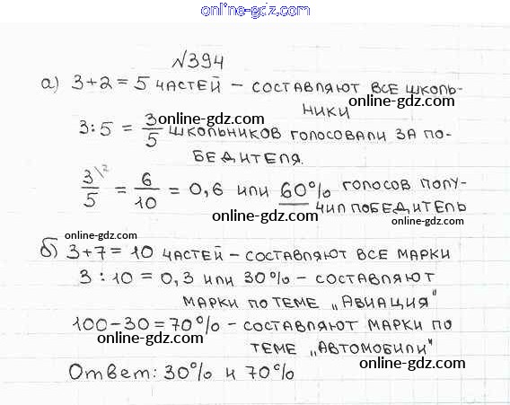 Готовые домашние задания по Математике за 6 класс Учебник Бунимович, Кузнецова Сферы 2014 - Упражнения 394