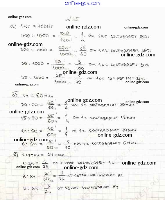 Готовые домашние задания по Математике за 6 класс Учебник Бунимович, Кузнецова Сферы 2014 - Упражнения 45