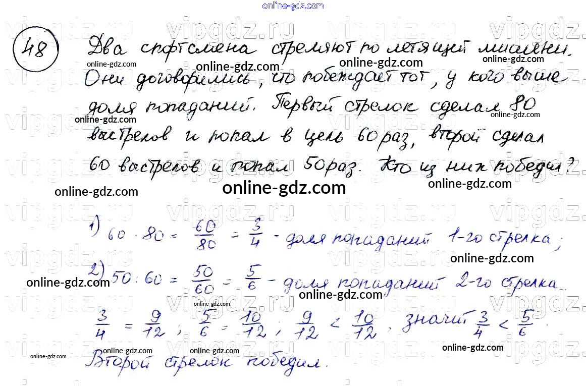 Готовые домашние задания по Математике за 6 класс Учебник Бунимович, Кузнецова Сферы 2014 - Упражнения 48