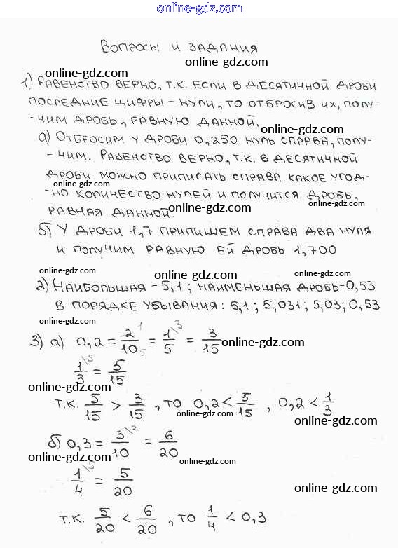 Готовые домашние задания по Математике за 6 класс Учебник Бунимович, Кузнецова Сферы 2014 - Вопросы и задания. Параграфы 11
