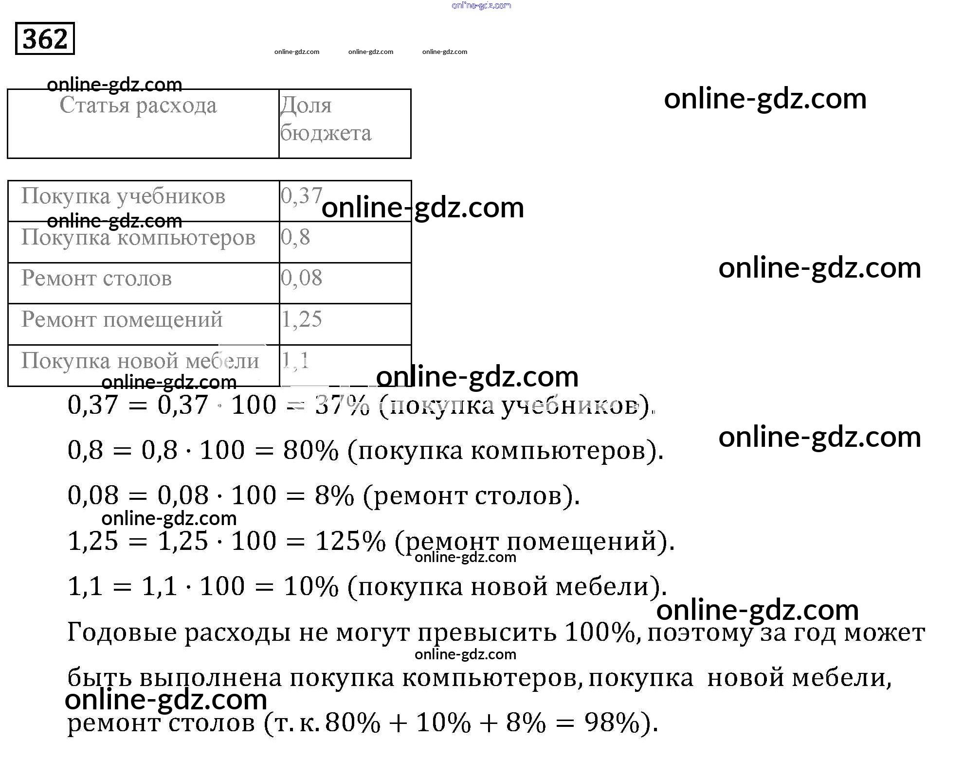 Готовые домашние задания по Математике за 6 класс Учебник Бунимович, Кузнецова Сферы 2019 - Упражнения 362