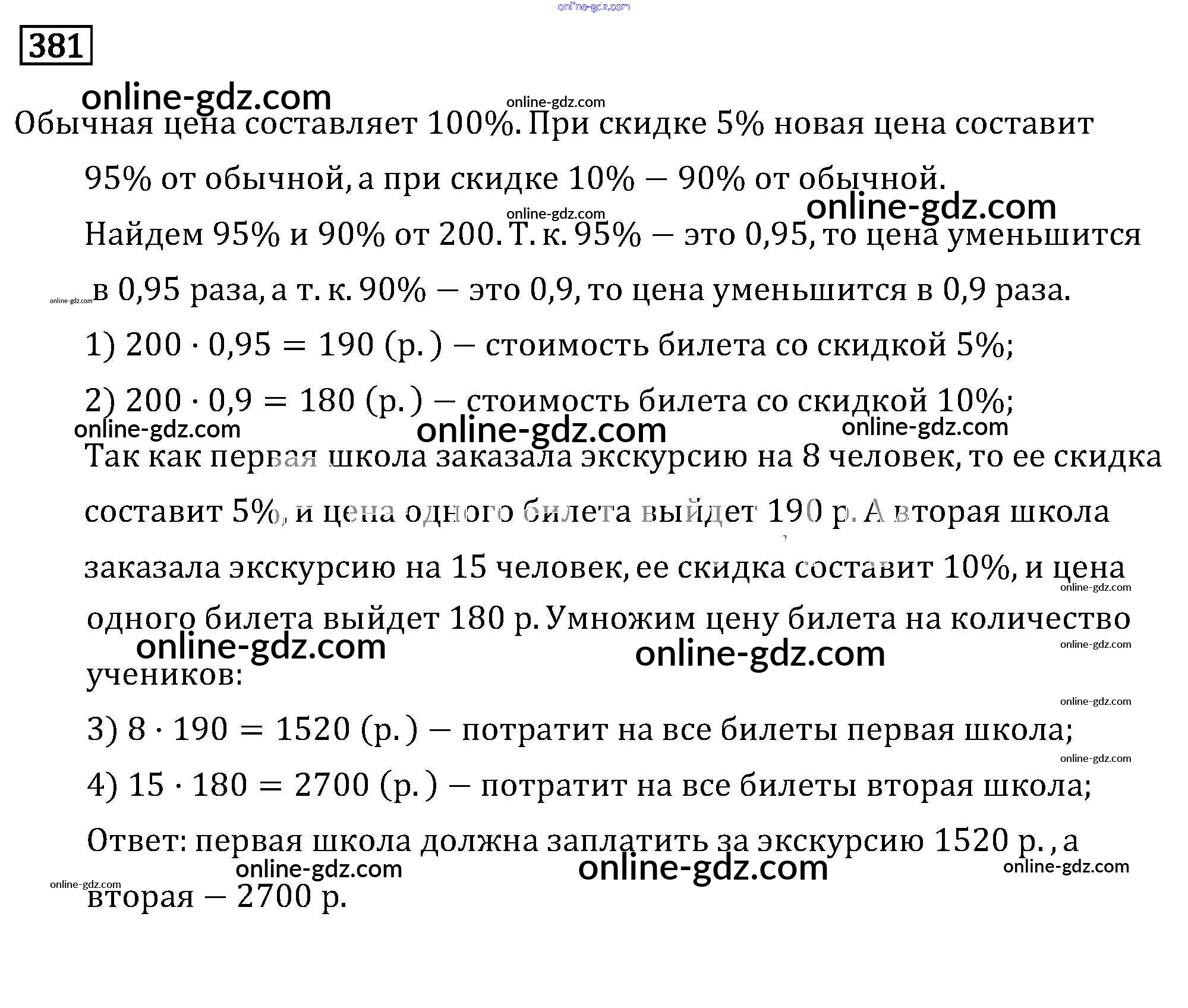 Готовые домашние задания по Математике за 6 класс Учебник Бунимович, Кузнецова Сферы 2019 - Упражнения 381
