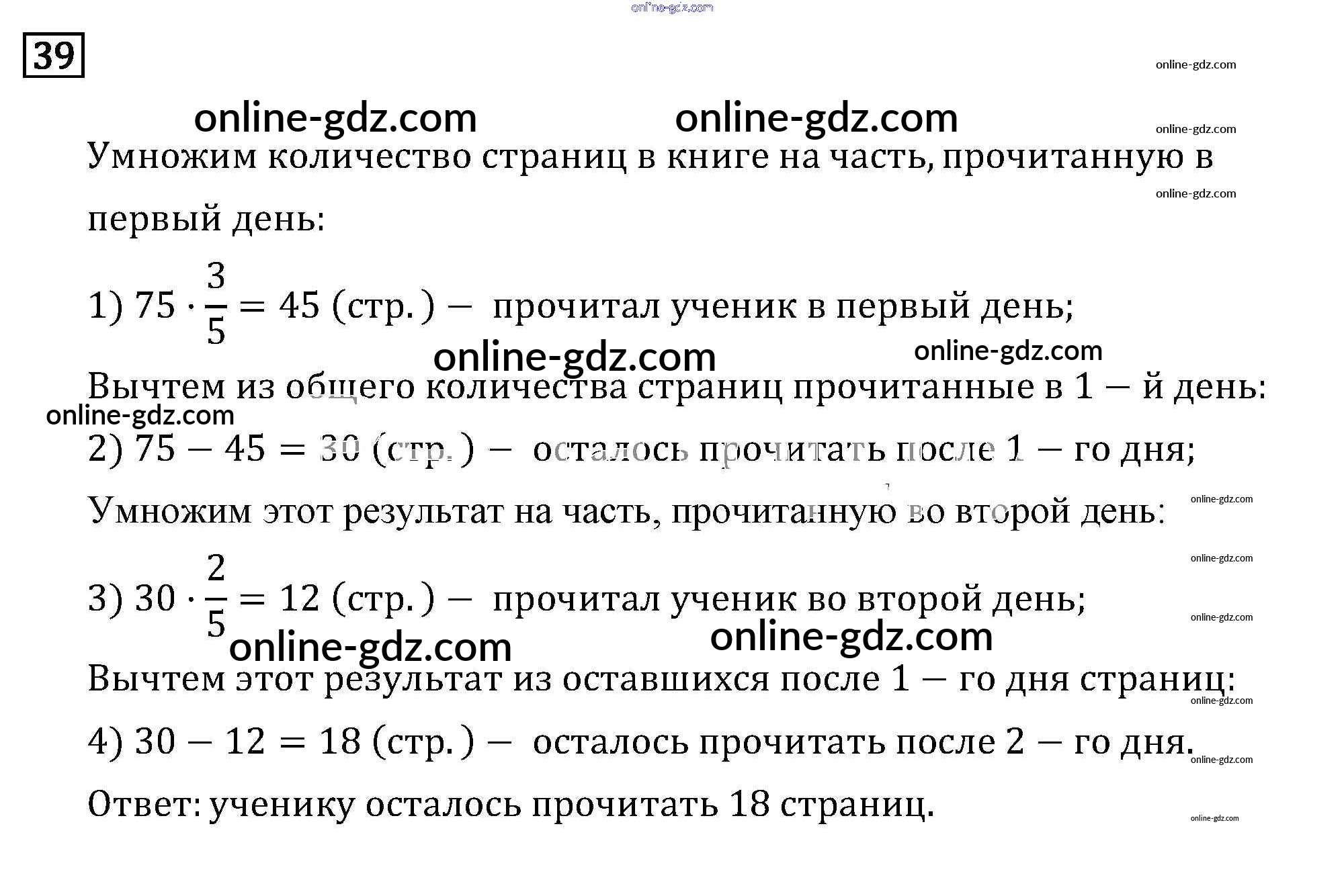 Готовые домашние задания по Математике за 6 класс Учебник Бунимович, Кузнецова Сферы 2019 - Упражнения 39