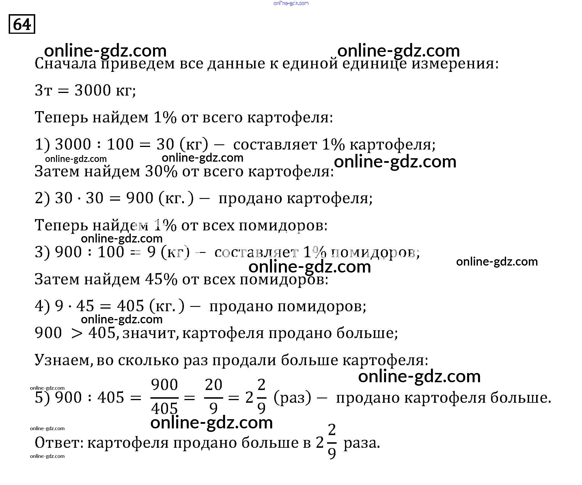 Готовые домашние задания по Математике за 6 класс Учебник Бунимович, Кузнецова Сферы 2019 - Упражнения 64