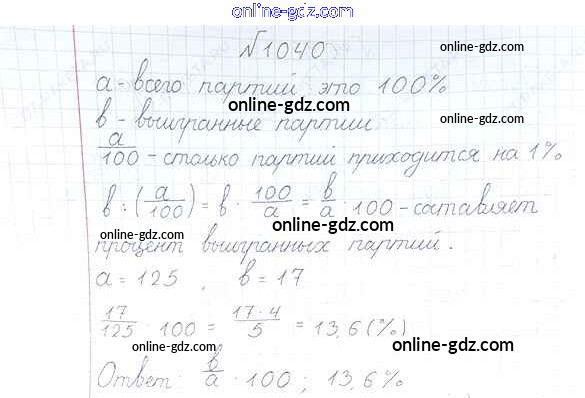 Готовые домашние задания по Математике за 6 класс Учебник Дорофеев, Шарыгин Академический школьный учебник 2014 - Упражнения 1040