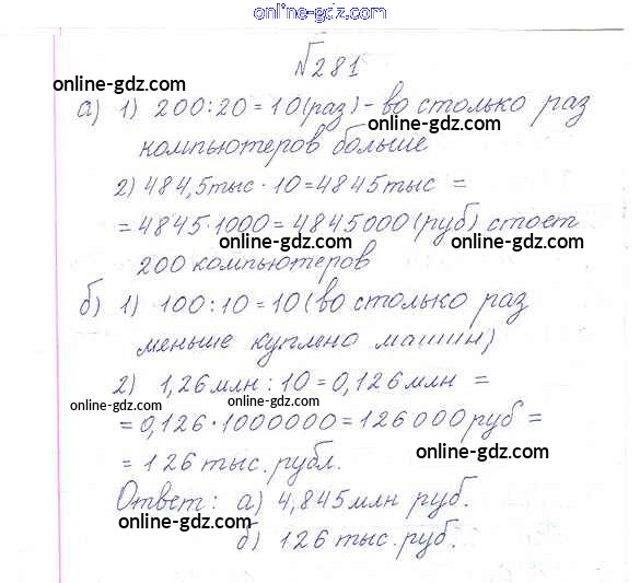 Готовые домашние задания по Математике за 6 класс Учебник Дорофеев, Шарыгин Академический школьный учебник 2014 - Упражнения 281