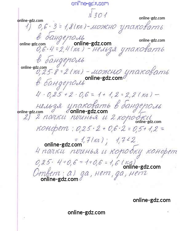 Готовые домашние задания по Математике за 6 класс Учебник Дорофеев, Шарыгин Академический школьный учебник 2014 - Упражнения 301