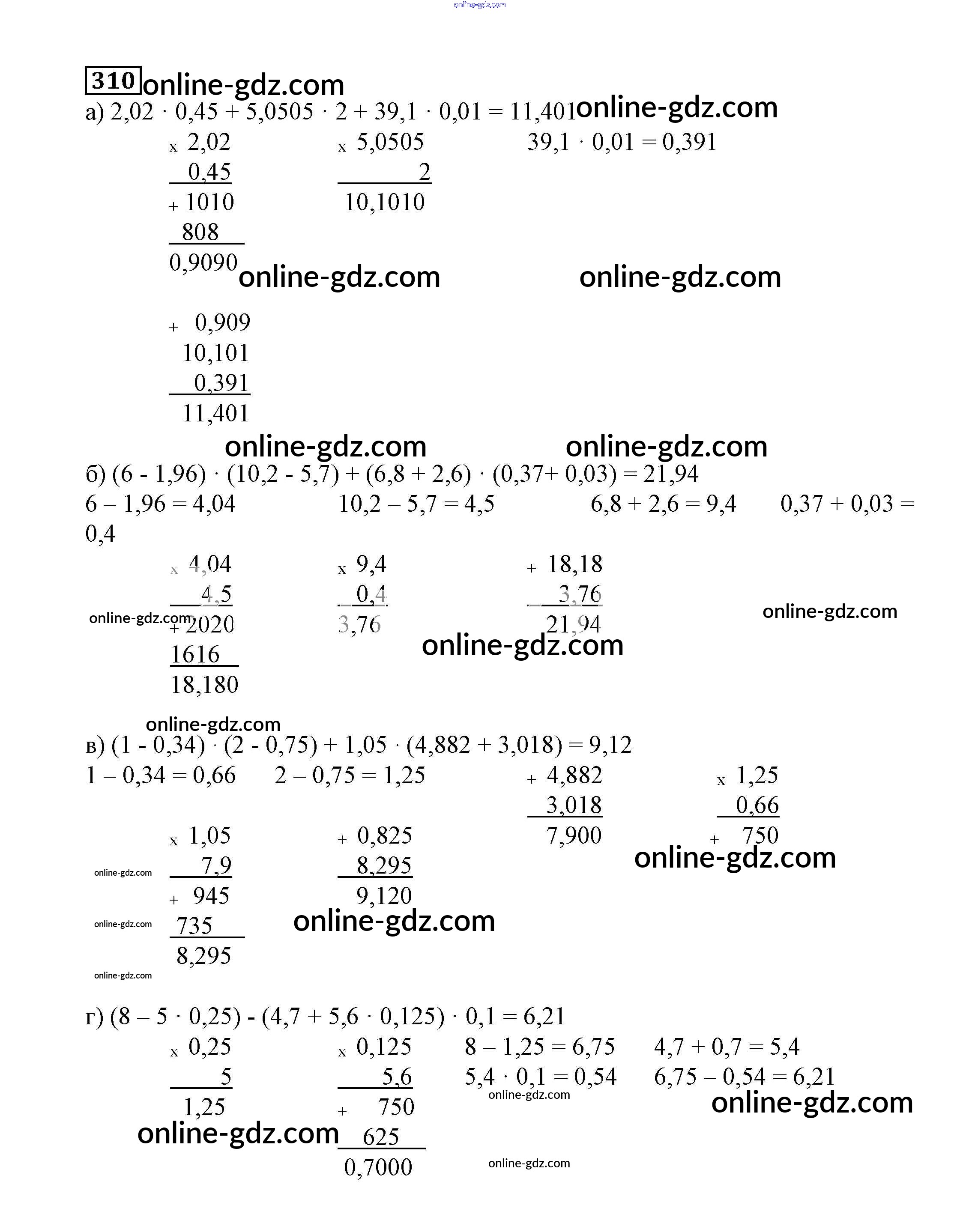 Готовые домашние задания по Математике за 6 класс Учебник Дорофеев, Шарыгин Академический школьный учебник 2014 - Упражнения 310