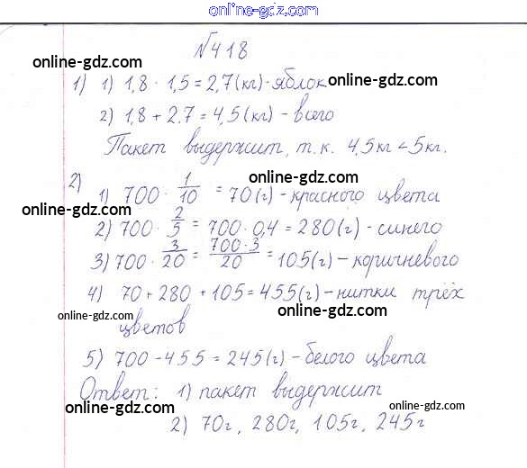 Готовые домашние задания по Математике за 6 класс Учебник Дорофеев, Шарыгин Академический школьный учебник 2014 - Упражнения 418