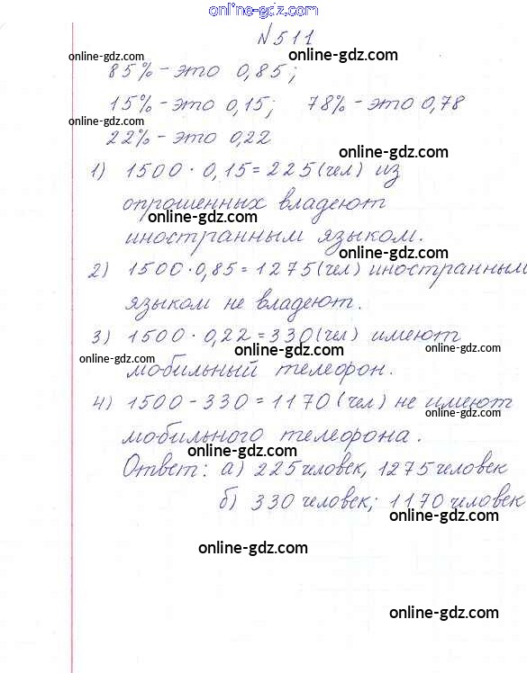 Готовые домашние задания по Математике за 6 класс Учебник Дорофеев, Шарыгин Академический школьный учебник 2014 - Упражнения 511