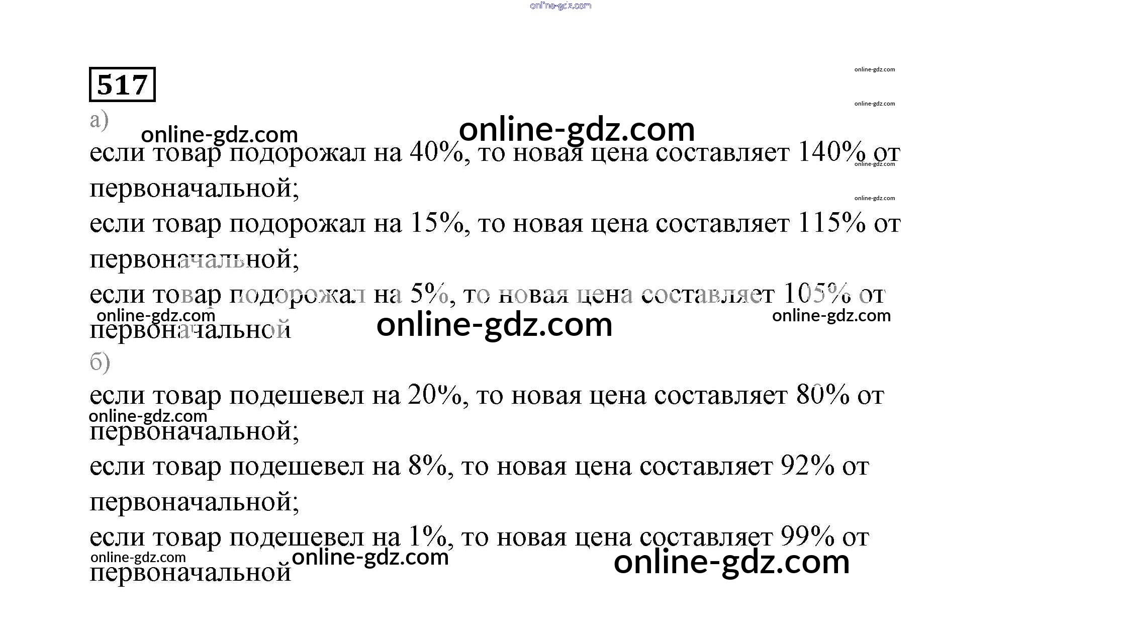 Готовые домашние задания по Математике за 6 класс Учебник Дорофеев, Шарыгин Академический школьный учебник 2014 - Упражнения 517