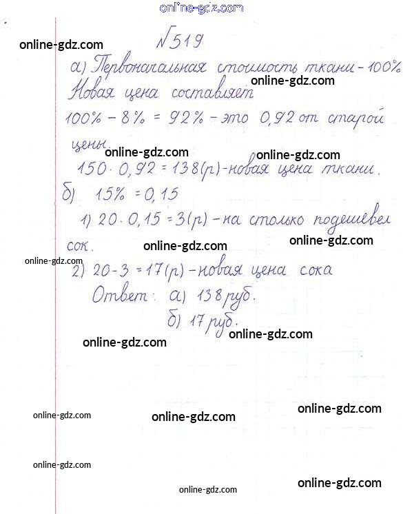 Готовые домашние задания по Математике за 6 класс Учебник Дорофеев, Шарыгин Академический школьный учебник 2014 - Упражнения 519