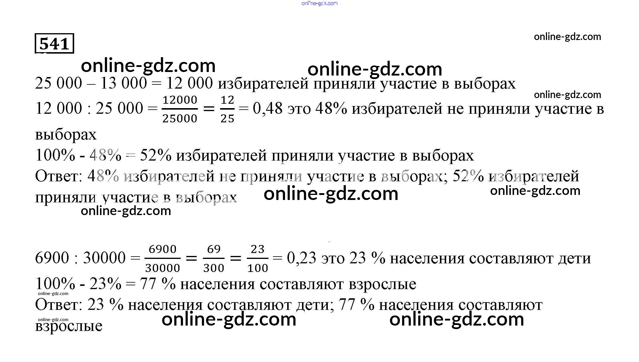 Готовые домашние задания по Математике за 6 класс Учебник Дорофеев, Шарыгин Академический школьный учебник 2014 - Упражнения 541