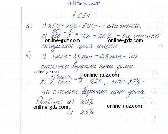 Готовые домашние задания по Математике за 6 класс Учебник Дорофеев, Шарыгин Академический школьный учебник 2014 - Упражнения 551