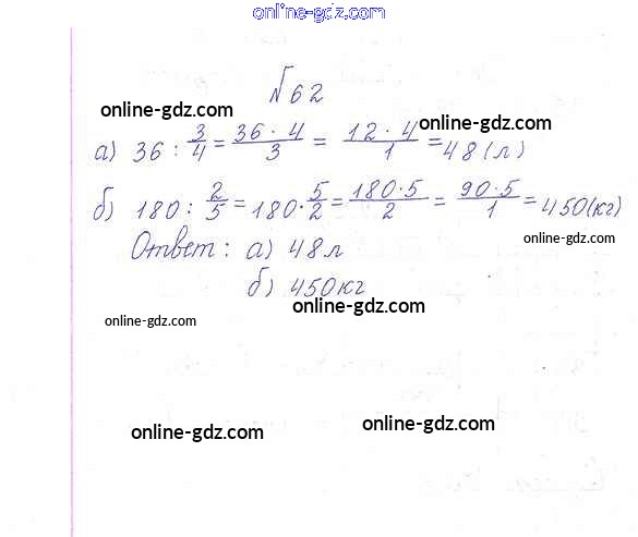 Готовые домашние задания по Математике за 6 класс Учебник Дорофеев, Шарыгин Академический школьный учебник 2014 - Упражнения 62