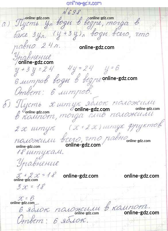 Готовые домашние задания по Математике за 6 класс Учебник Дорофеев, Шарыгин Академический школьный учебник 2014 - Упражнения 698