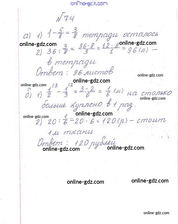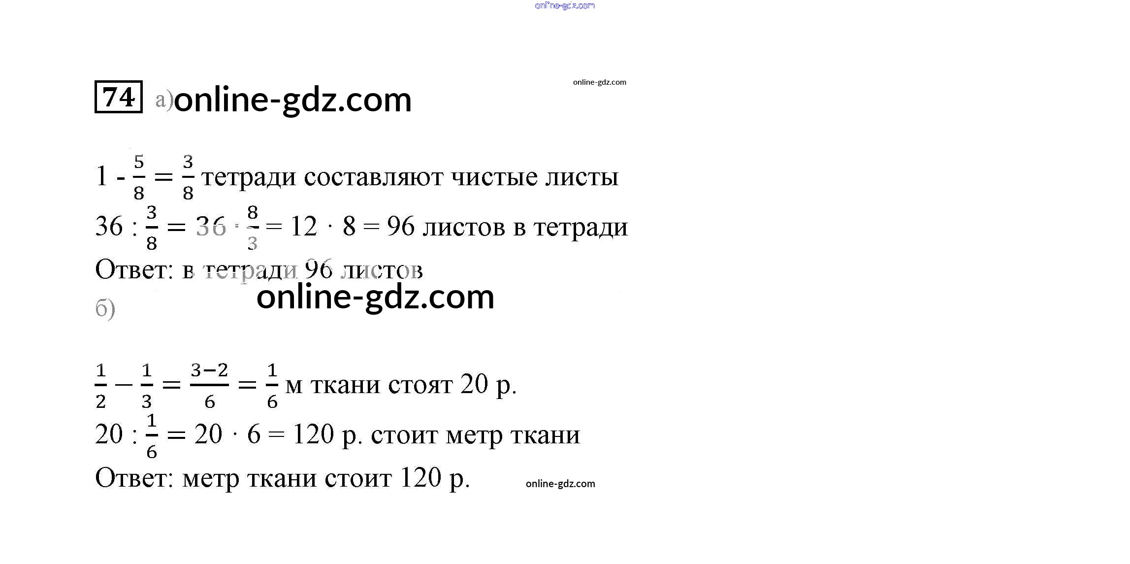 Готовые домашние задания по Математике за 6 класс Учебник Дорофеев, Шарыгин Академический школьный учебник 2014 - Упражнения 74