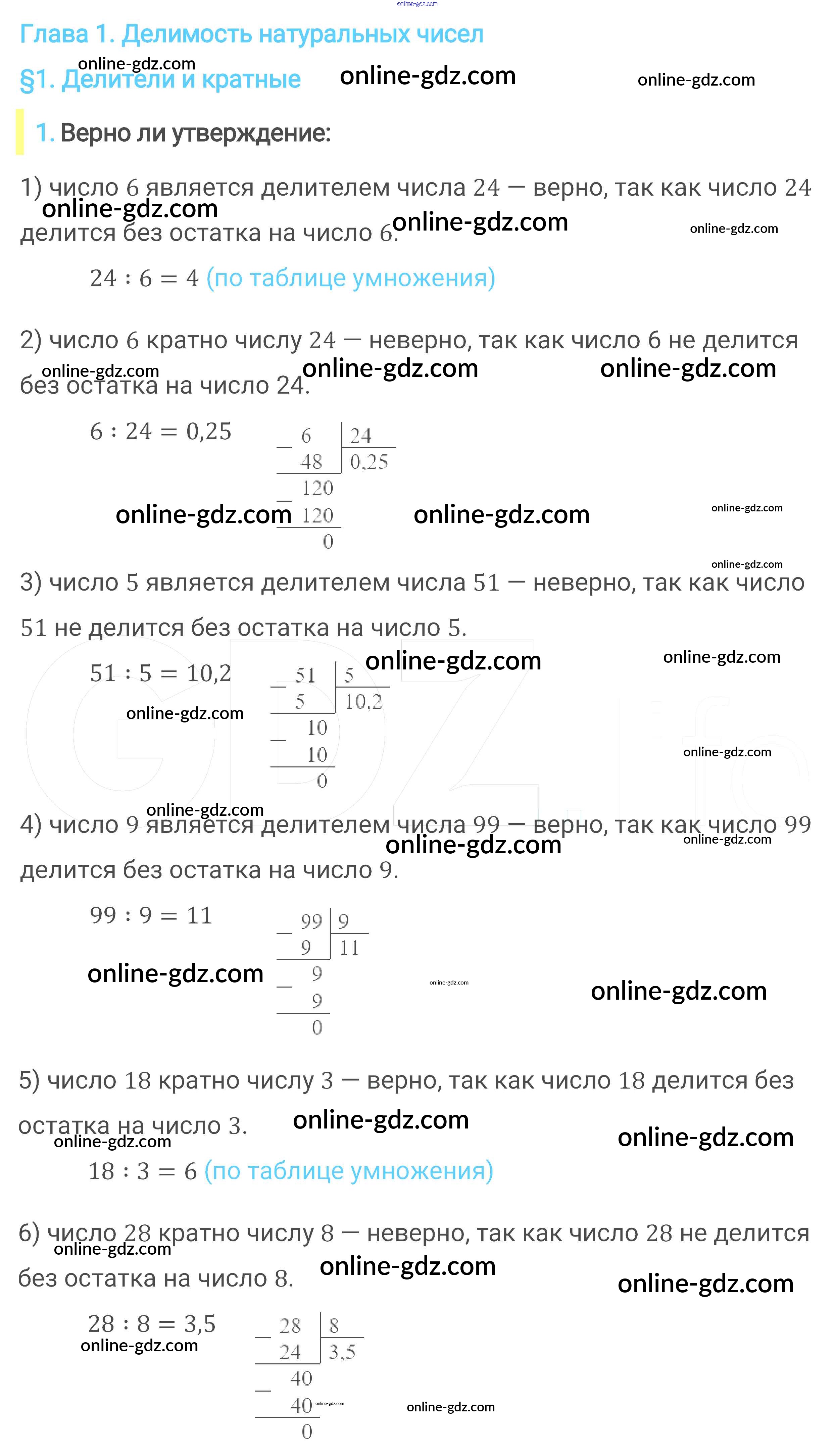 Готовые домашние задания по Математике за 6 класс Учебник Мерзляк, Полонский Алгоритм успеха 2016 - Глава 1. Делимость натуральных чисел (упражнения) 1