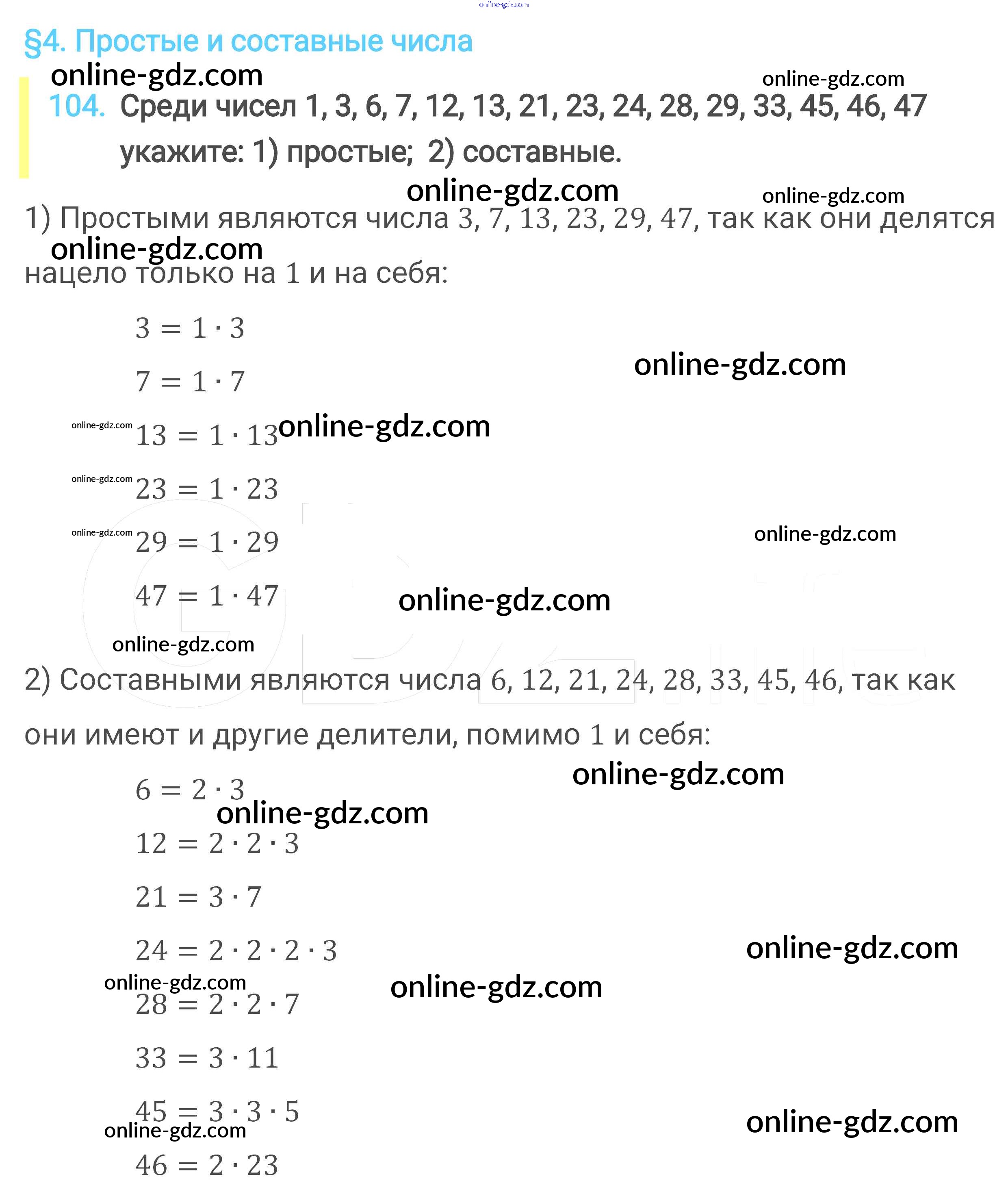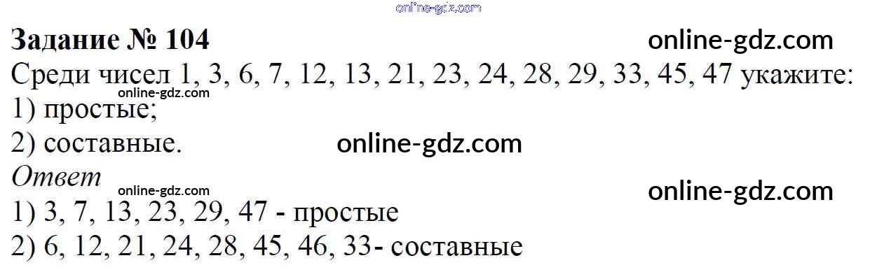 Готовые домашние задания по Математике за 6 класс Учебник Мерзляк, Полонский Алгоритм успеха 2016 - Глава 1. Делимость натуральных чисел (упражнения) 104