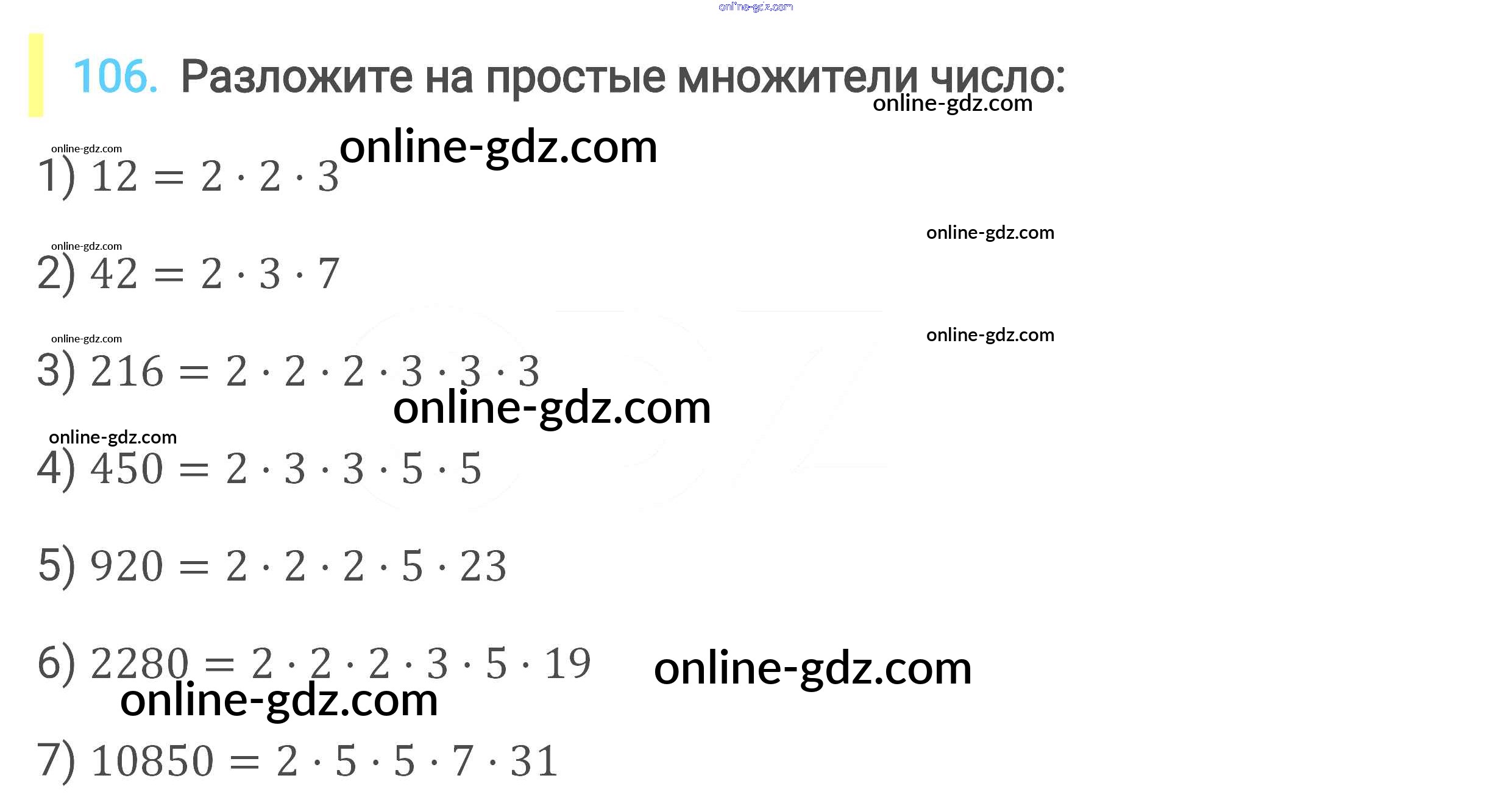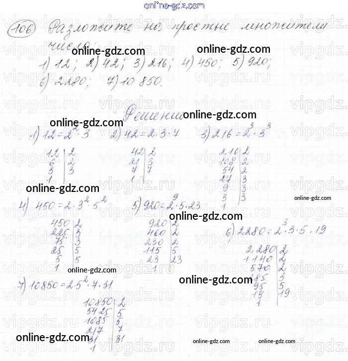 Готовые домашние задания по Математике за 6 класс Учебник Мерзляк, Полонский Алгоритм успеха 2016 - Глава 1. Делимость натуральных чисел (упражнения) 106