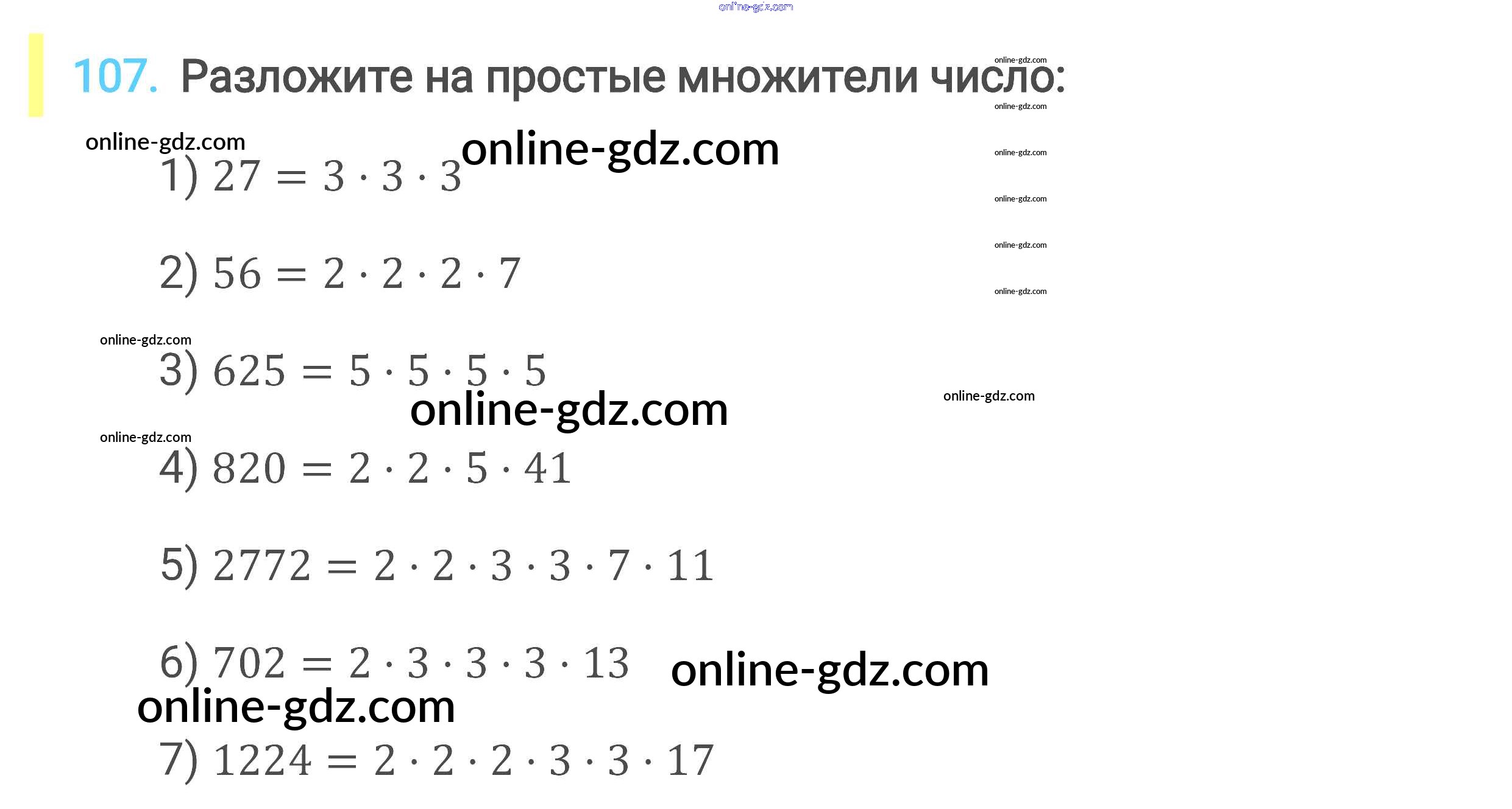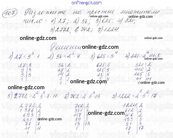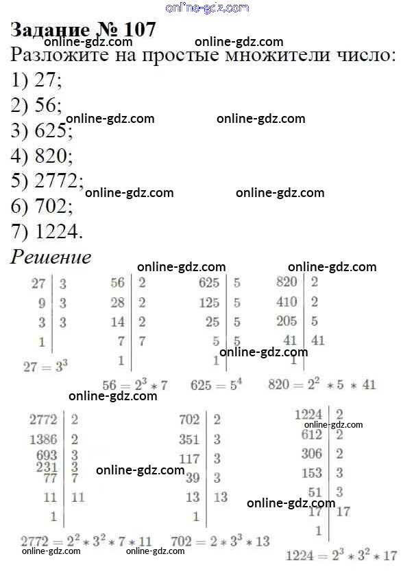 Готовые домашние задания по Математике за 6 класс Учебник Мерзляк, Полонский Алгоритм успеха 2016 - Глава 1. Делимость натуральных чисел (упражнения) 107
