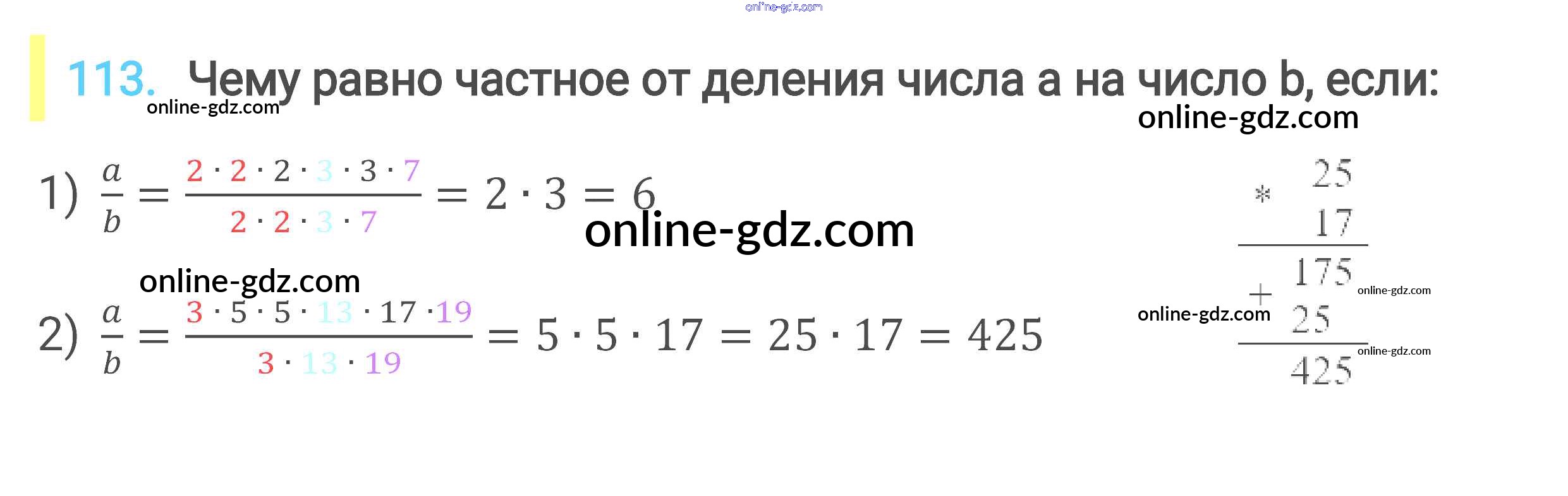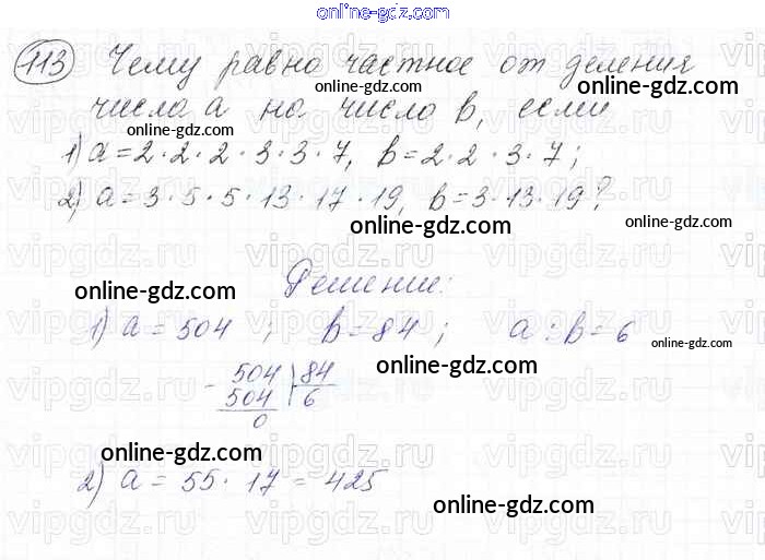 Готовые домашние задания по Математике за 6 класс Учебник Мерзляк, Полонский Алгоритм успеха 2016 - Глава 1. Делимость натуральных чисел (упражнения) 113