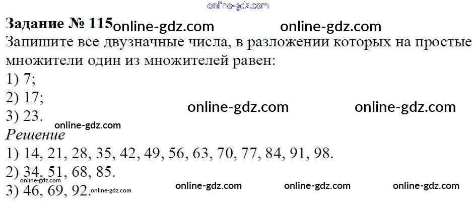 Готовые домашние задания по Математике за 6 класс Учебник Мерзляк, Полонский Алгоритм успеха 2016 - Глава 1. Делимость натуральных чисел (упражнения) 115
