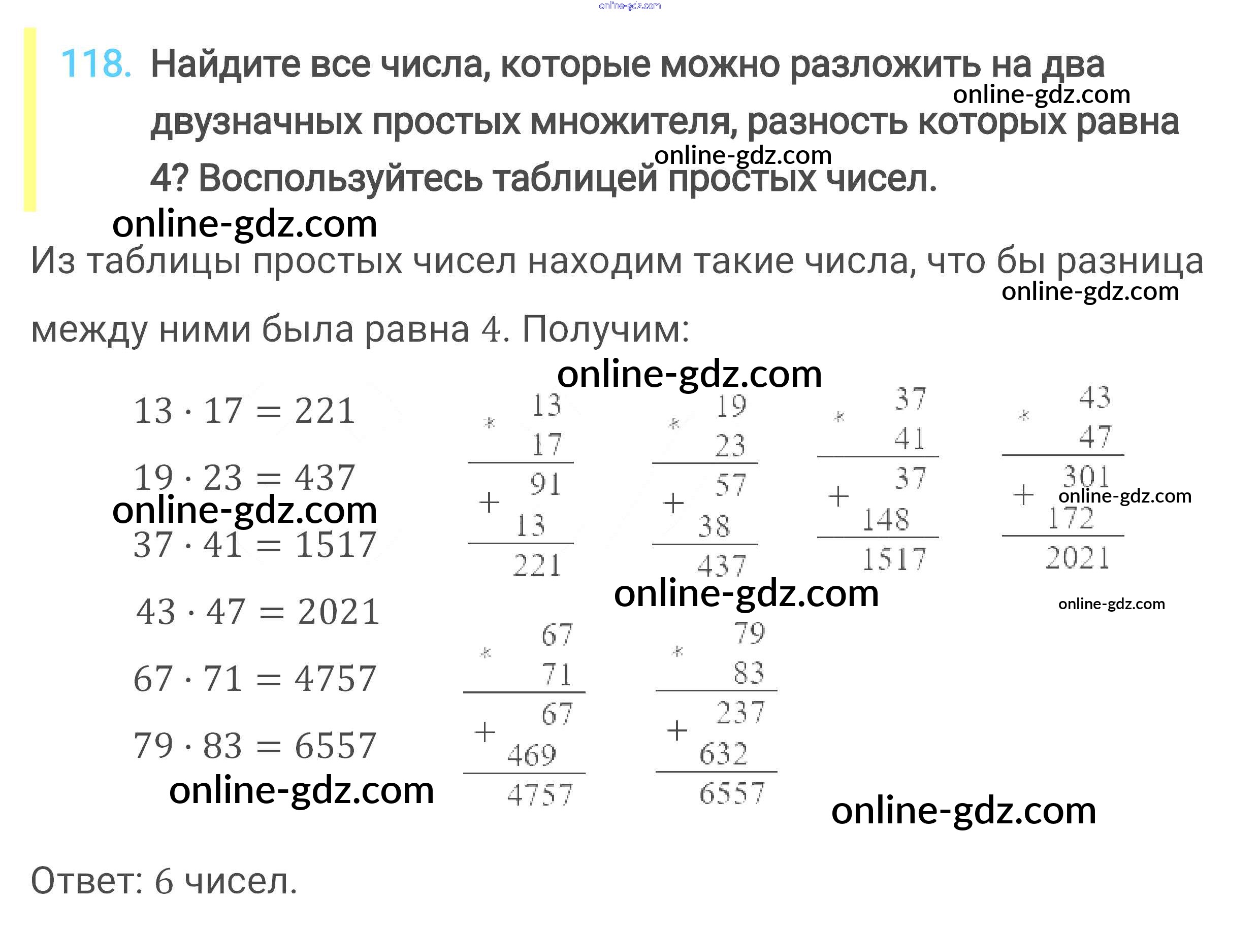 Готовые домашние задания по Математике за 6 класс Учебник Мерзляк, Полонский Алгоритм успеха 2016 - Глава 1. Делимость натуральных чисел (упражнения) 118