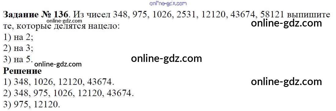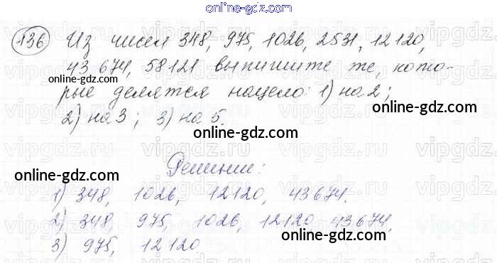 Готовые домашние задания по Математике за 6 класс Учебник Мерзляк, Полонский Алгоритм успеха 2016 - Глава 1. Делимость натуральных чисел (упражнения) 136