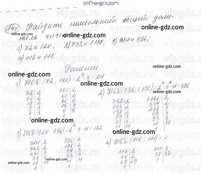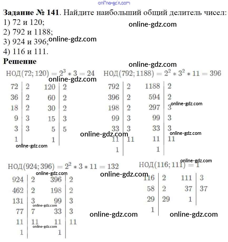 Готовые домашние задания по Математике за 6 класс Учебник Мерзляк, Полонский Алгоритм успеха 2016 - Глава 1. Делимость натуральных чисел (упражнения) 141
