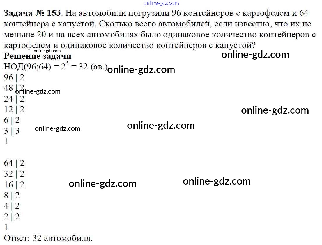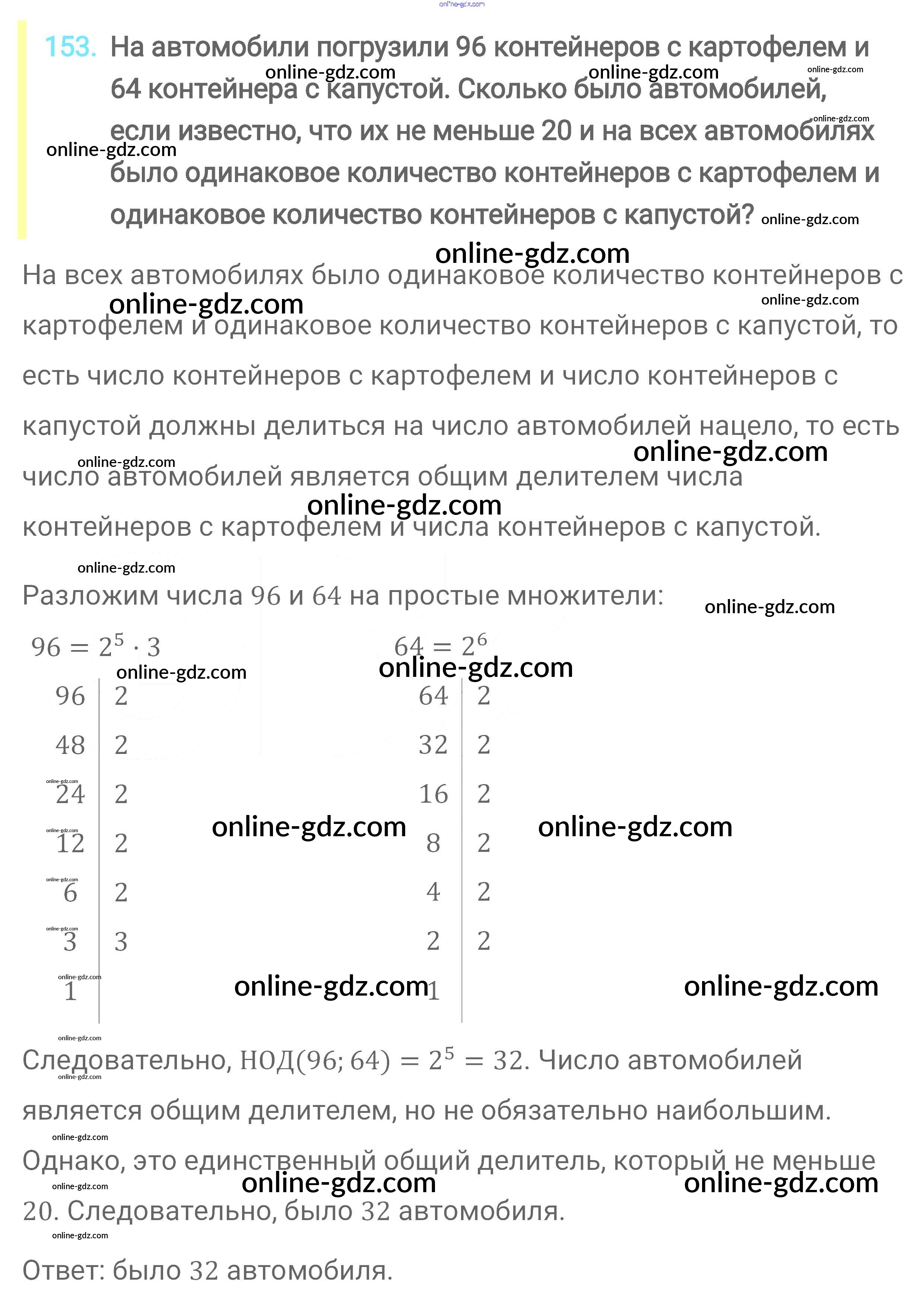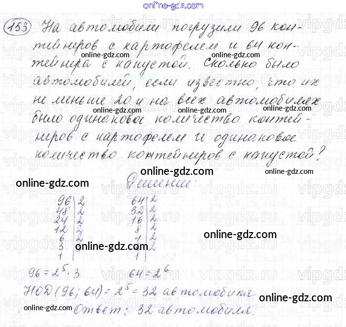 Готовые домашние задания по Математике за 6 класс Учебник Мерзляк, Полонский Алгоритм успеха 2016 - Глава 1. Делимость натуральных чисел (упражнения) 153