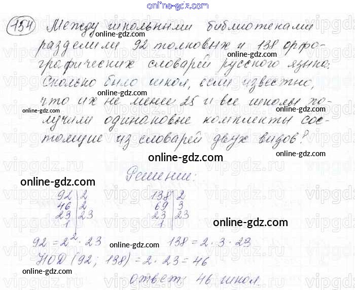 Готовые домашние задания по Математике за 6 класс Учебник Мерзляк, Полонский Алгоритм успеха 2016 - Глава 1. Делимость натуральных чисел (упражнения) 154