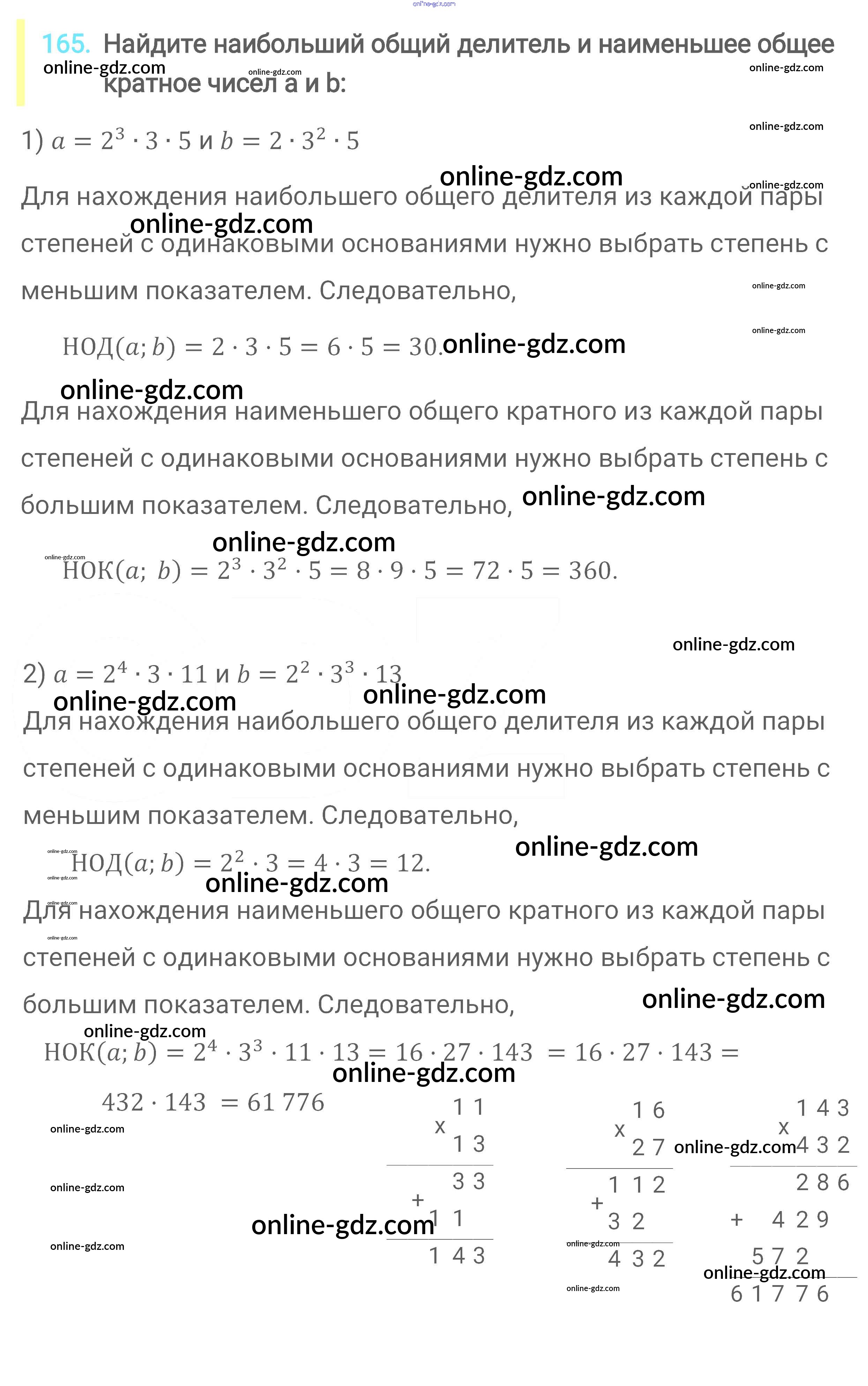 Готовые домашние задания по Математике за 6 класс Учебник Мерзляк, Полонский Алгоритм успеха 2016 - Глава 1. Делимость натуральных чисел (упражнения) 165