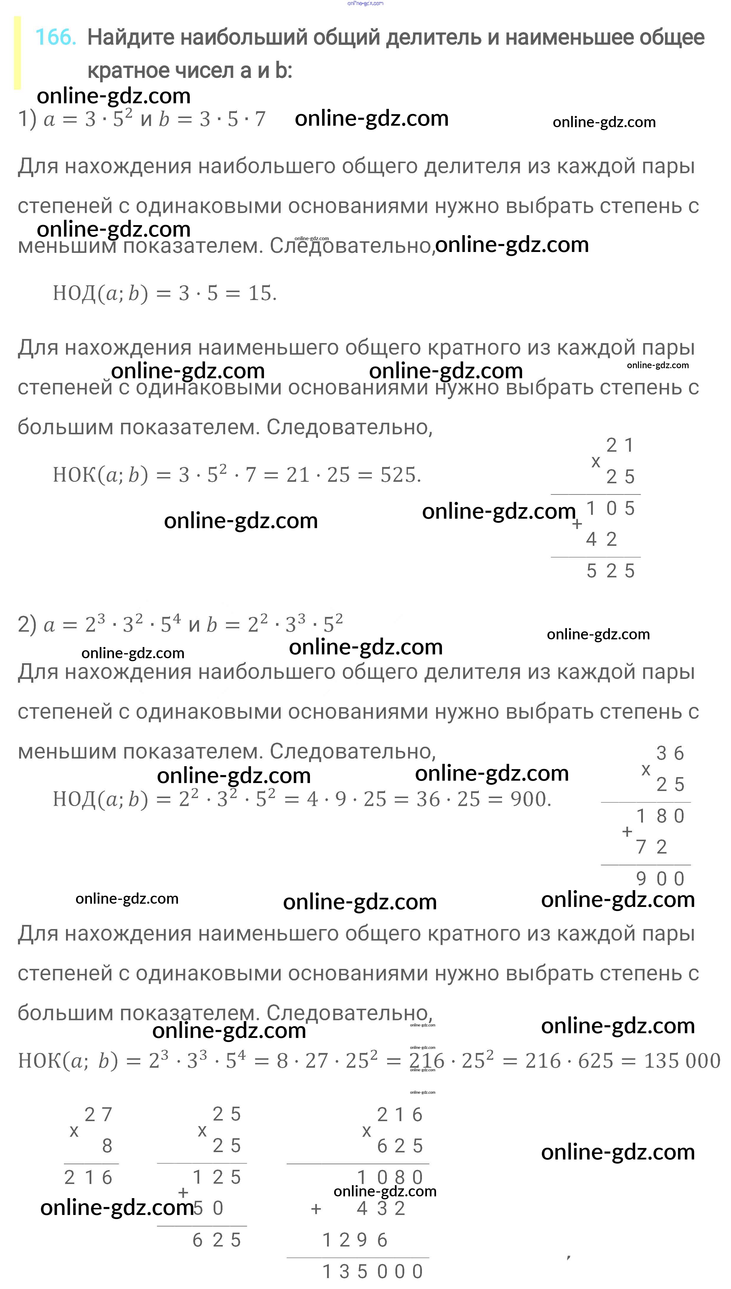 Готовые домашние задания по Математике за 6 класс Учебник Мерзляк, Полонский Алгоритм успеха 2016 - Глава 1. Делимость натуральных чисел (упражнения) 166